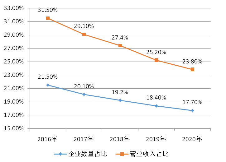 图1:“十三五”期间规模以上工业在“四上”企业中的占比情况